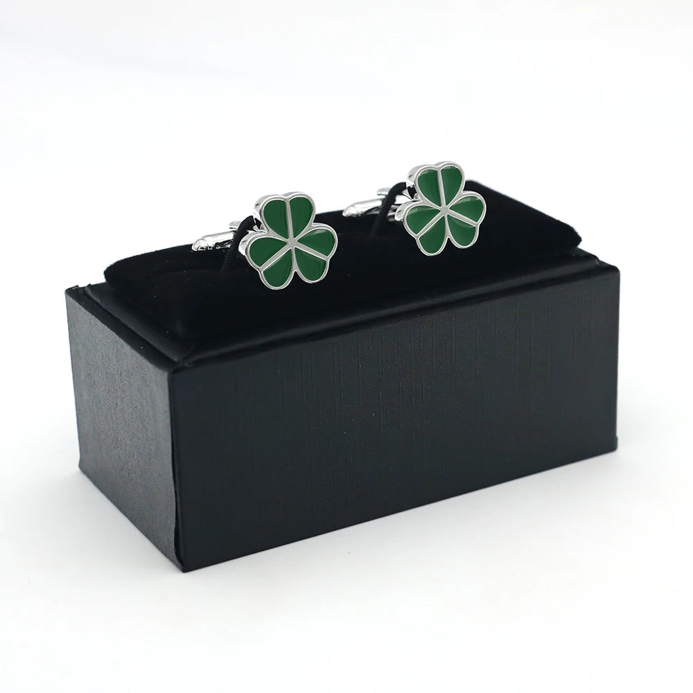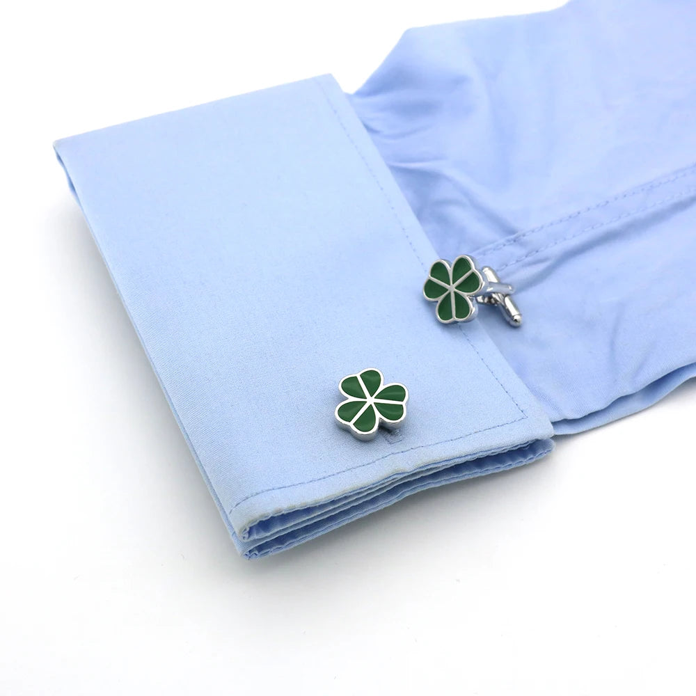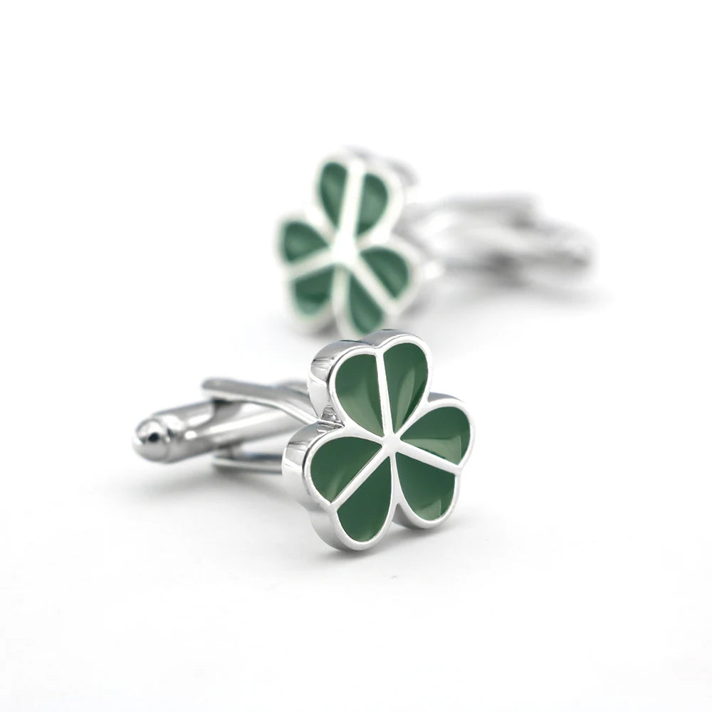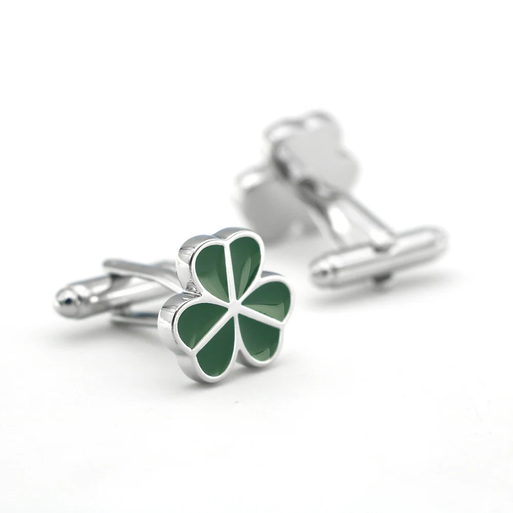 Add a lucky charm to your outfit with these green lucky clover leaf cufflinks.